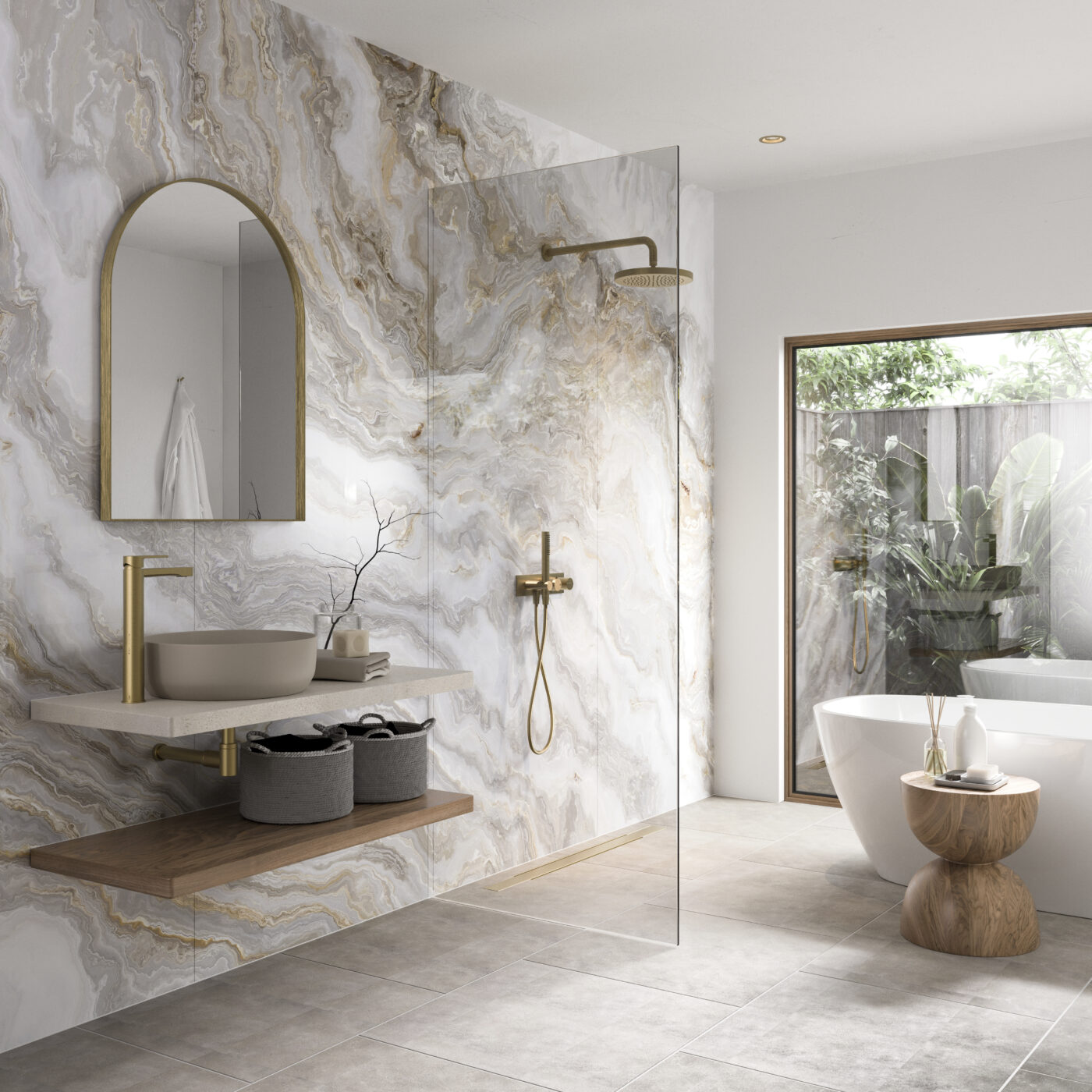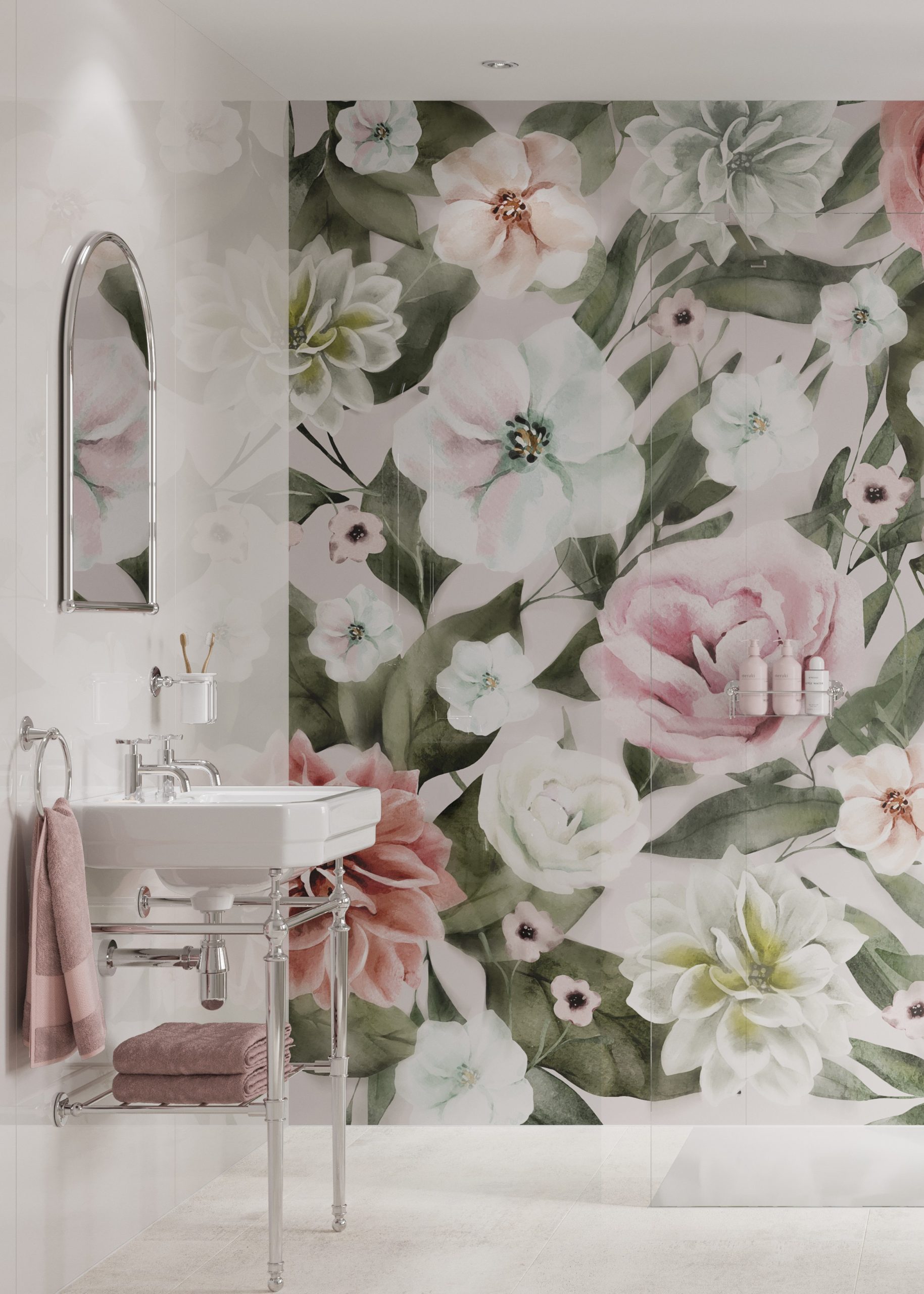 Showerwall’s Acrylic Collection can create a striking accent wall, perfect for breaking up the space or used as a statement within the bathroom. The 4mm acrylic panels are rear printed to give a glass-like finish, and selected decors are now also available in a contemporary matt finish. By using the superior finish of acrylic to bring digital imagery to life, a Bespoke Panel service is also available allowing you the ultimate flexibility to create something unique.
