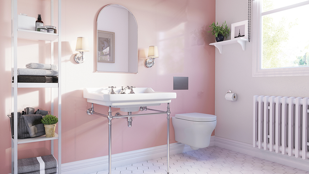 Set a tranquil tone and turn your bathroom into a serene retreat, where this decor’s sophisticated, glass-like finish catches the light to create a striking high-gloss statement wall.