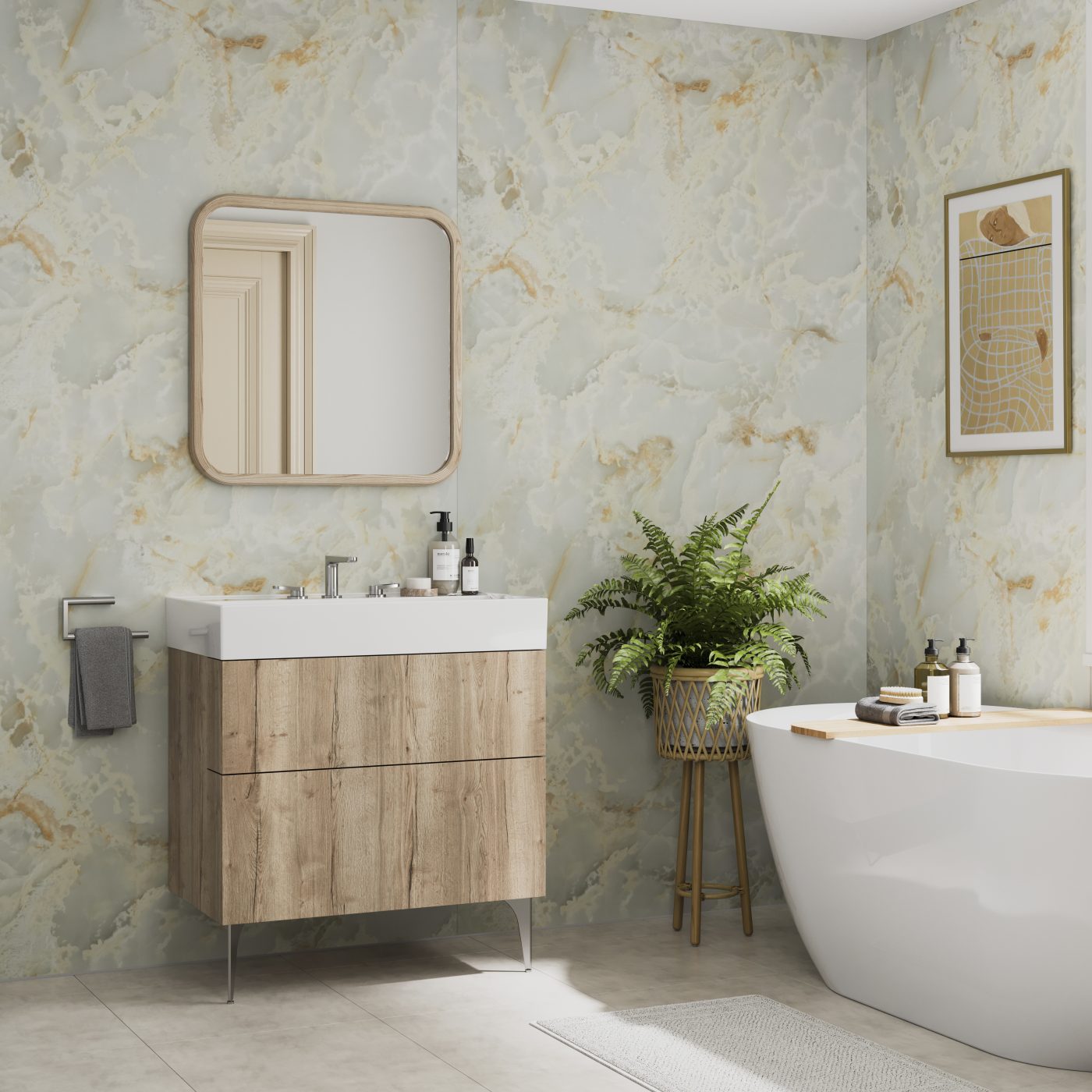 Elegant and endlessly captivating, Onyx Pearl blends soft ivory and alabaster tones with warm honeyed veining for a calm, stone-inspired look. Its luminous finish and organic layering create a tranquil, refined feel—ideal for bathrooms and feature walls with timeless style.
